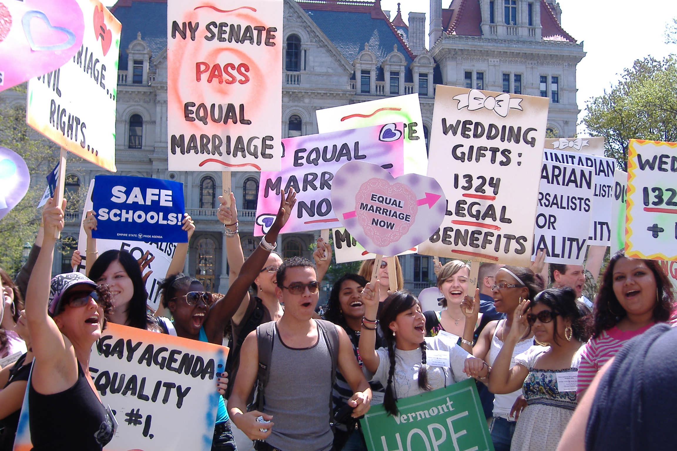 Meanwhile in New York, support for same-sex marriage continues to swell, furthering our hopes that our friends Carly & (Autostraddle photographer) Robin can get married (you know, when they’re ready). [See photo, right]