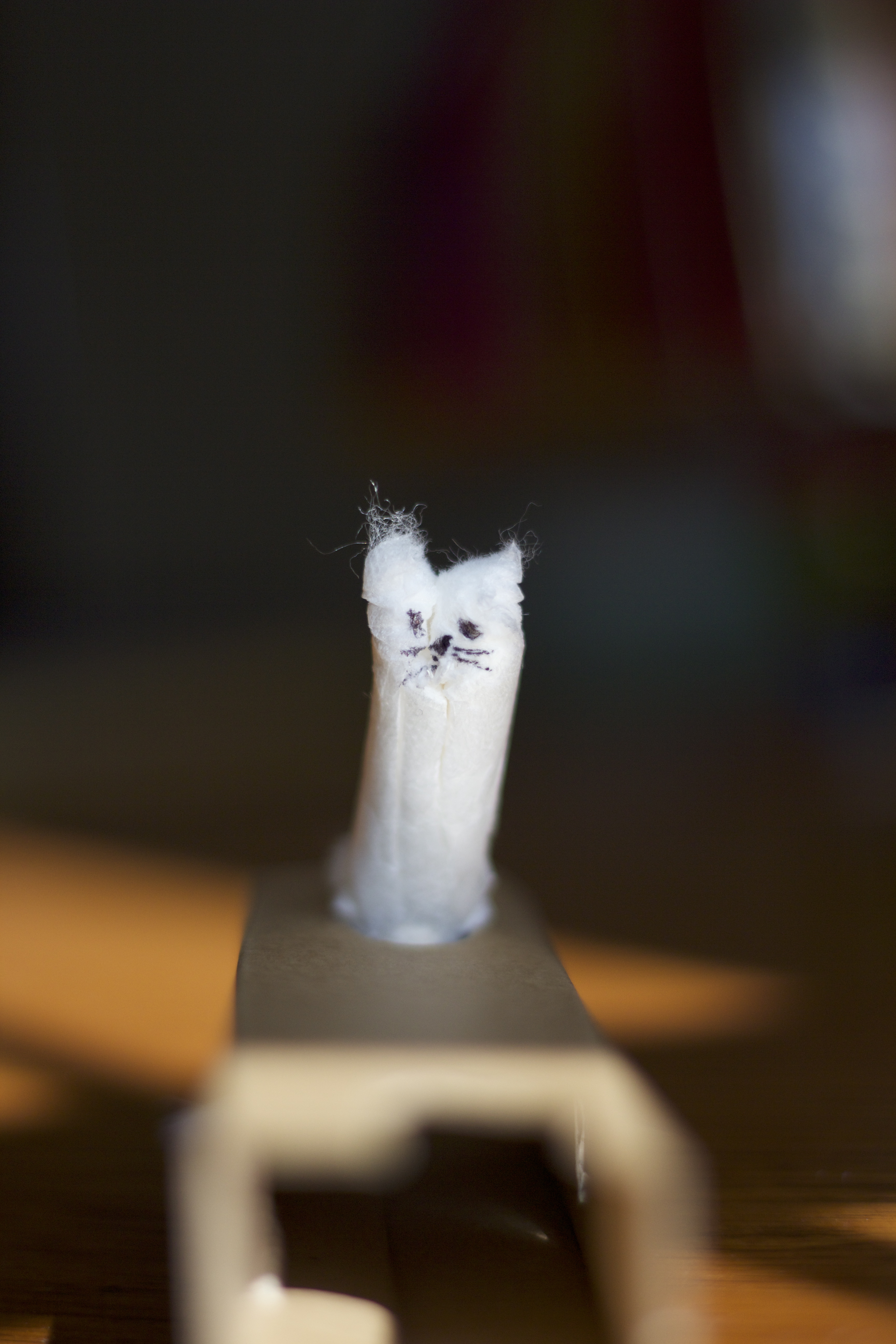 This is amazing and your cat is adorable. (Weirdly, I also think the tampon mice are kind of cute?)