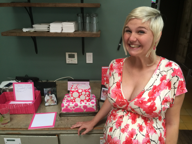 We renewed our vows to each other and said new ones to our sweet little baby, and we signed the paperwork that made our marriage legal in California. And then, just about a week later, it became legal everywhere. Our hostess surprised us with the most awesome hot pink wedding cake I’ve ever seen, which we ate amidst mountains of other delicious food.