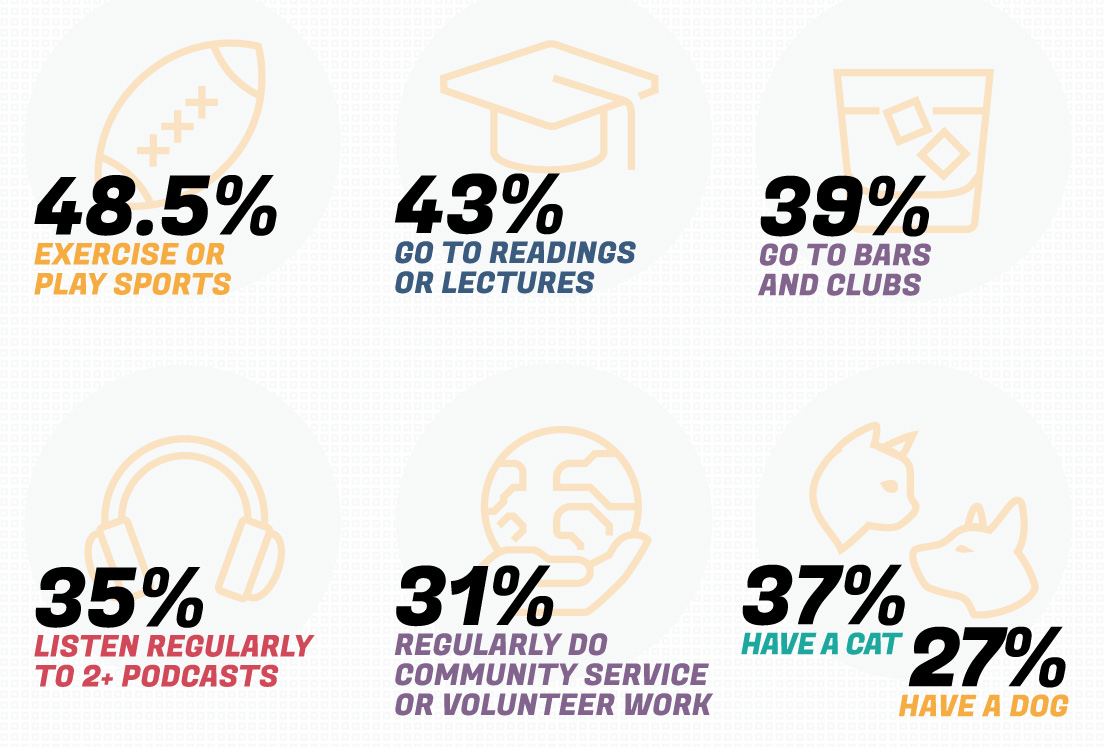 I also must report that in 2014, 59% of you exercised regularly and 54% of you went to bars/clubs/lounges. I don’t know what that says about you, I’m not in charge, I’m just sharing. However, I think 47% of you will be interested to know that only 53% of you have reported “sexual activity” as a thing you do regularly.