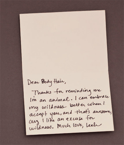 But body, I want to thank you because even through my short comings and my inability to fill you with the life that you deserve you’ve stayed strong and healthy. I am so grateful for you, body, every scar and scrape and bump and hair.