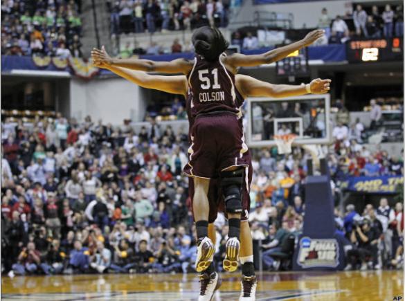 The second game of the night was a Big East battle between Notre Dame and UConn. Skylar Diggins led the Irish to a 72-63 victory with 28 points. This ended the Maya Moore era which is sad for UConn but great news for everyone else. There is no denying that Maya Moore was one of the best college players of all time if you couldn’t tell from the various interviews, montages, and clips of her shown before and throughout the game. Maybe ESPN knew UConn was going to lose so they had to get it all out? Anyway, she finished with 36 points and probably a bit of an attitude because the rest of her team played like they were too busy staring dreamily at Diana Taurasi in the stands. They probably were.