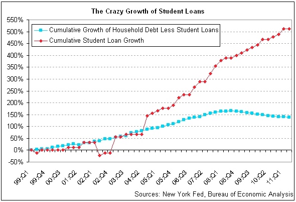 I think the high debt really makes students more submissive and conservative than they otherwise would be. It’s hard to take risks and rally around a cause when you are working 60 hour weeks or are terrified of defaulting on your loans.